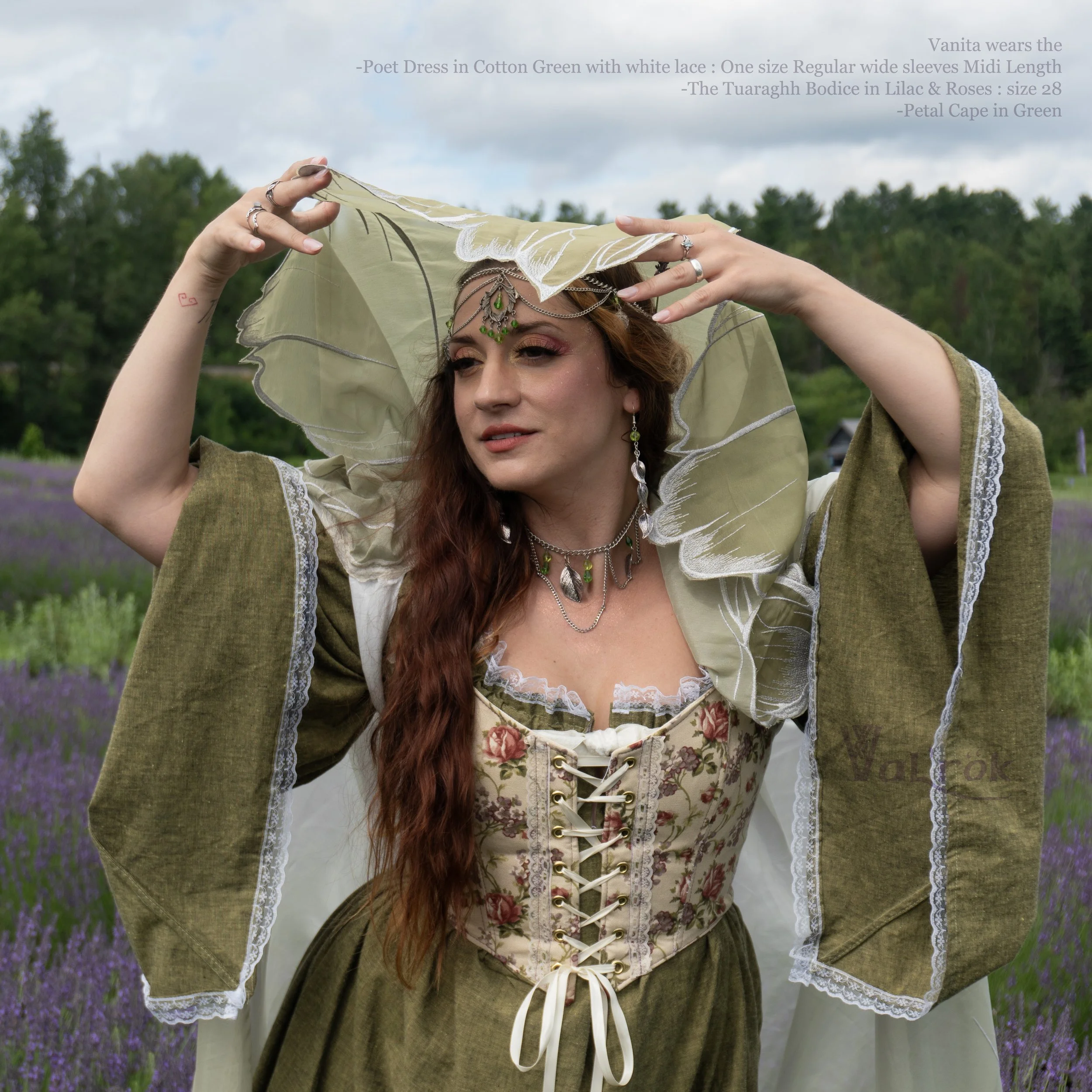 Corset style bustier with wide straps that adjust in front. Laced at the front with pointy middle. No boning or hoop. Very breathable and flexible. The front opening width may vary dependly on body type and lacing. Lined in cotton canvas 10 oz.
